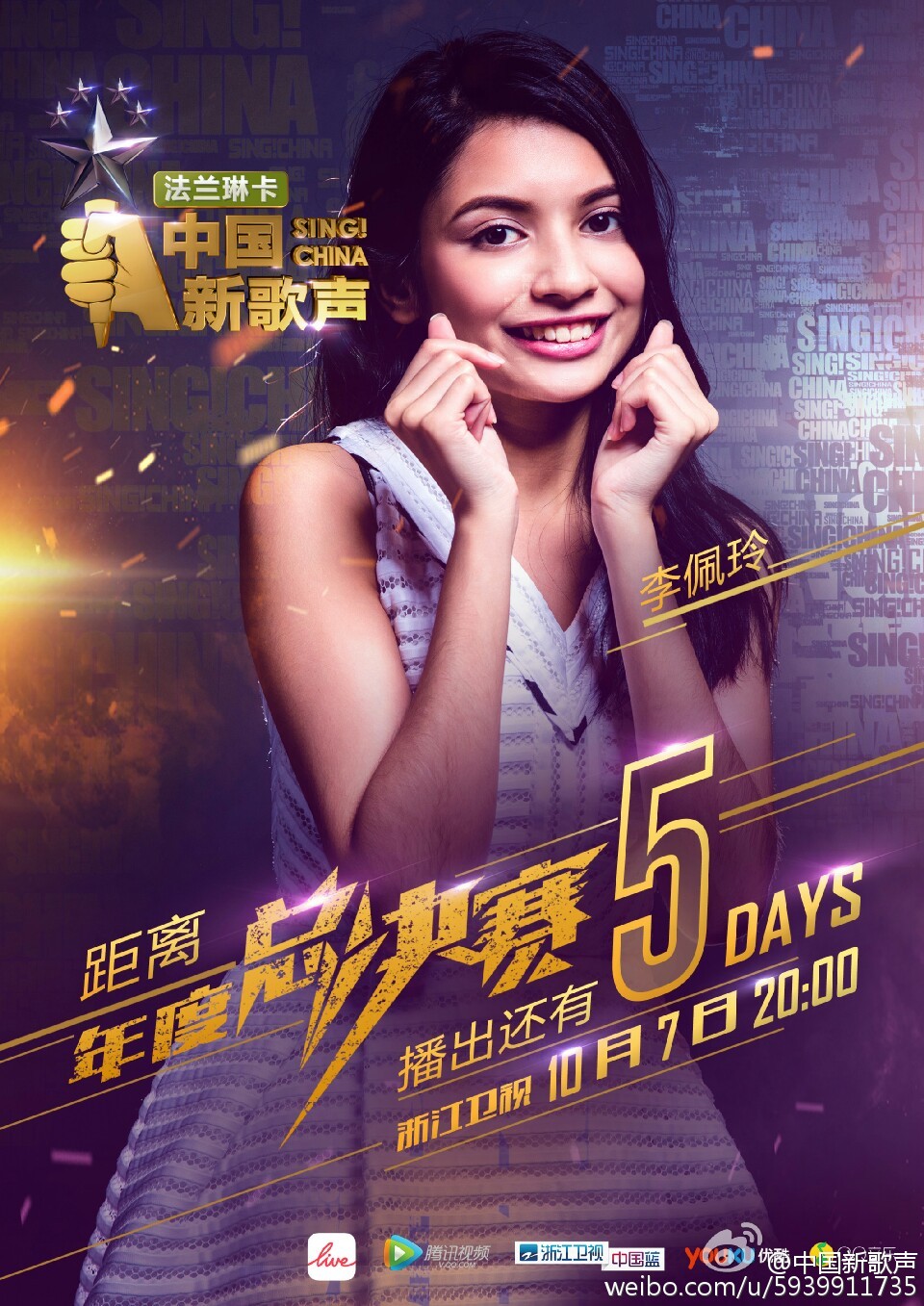 #中國新歌聲##10.7新歌聲總決賽#放假第2天,繼續總決賽倒計時~美美的佩玲7號總決賽加油喲~