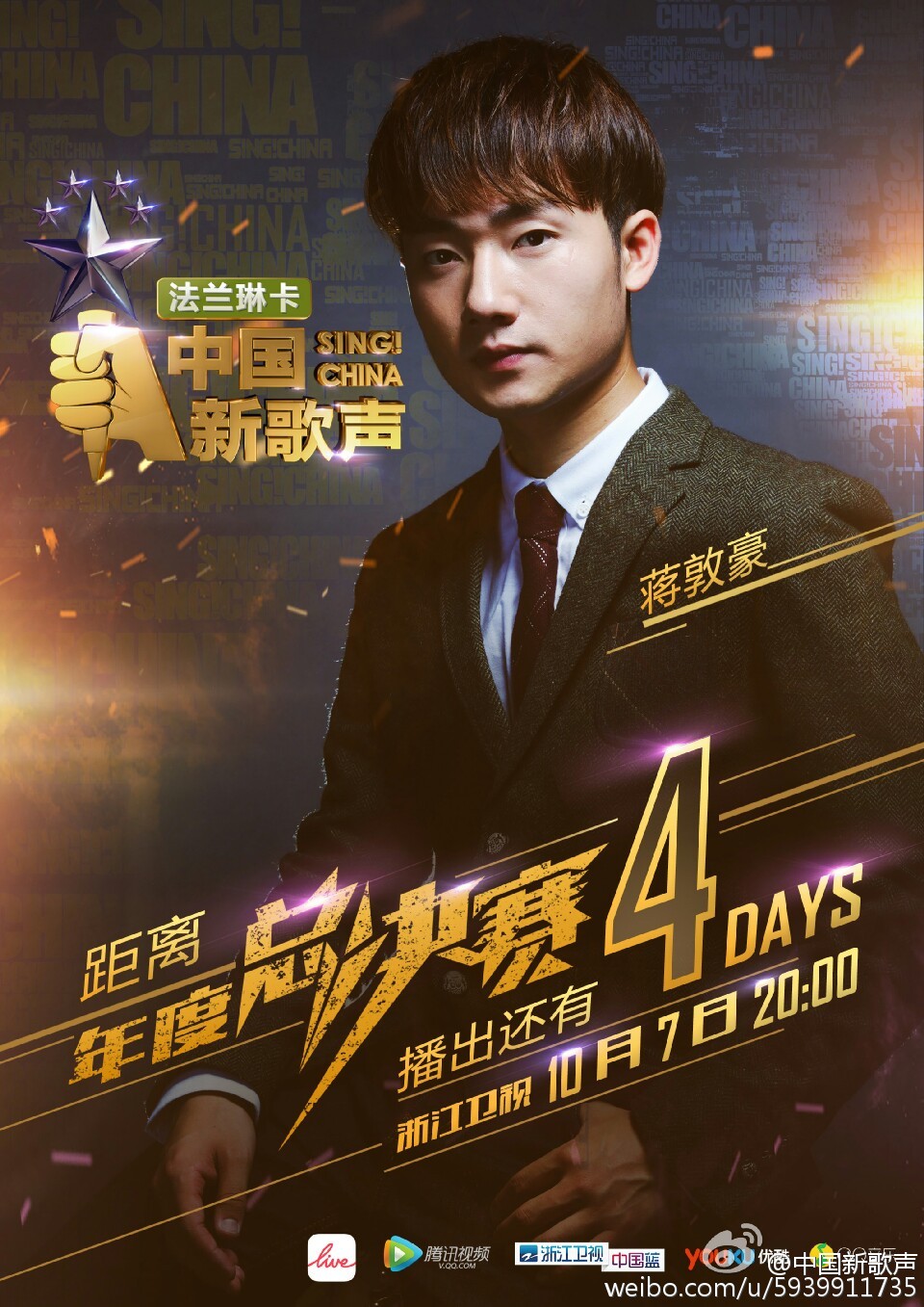 #中國新歌聲##10.7新歌聲總決賽#倒計時4天,獻上你們愛的蔣敦豪~