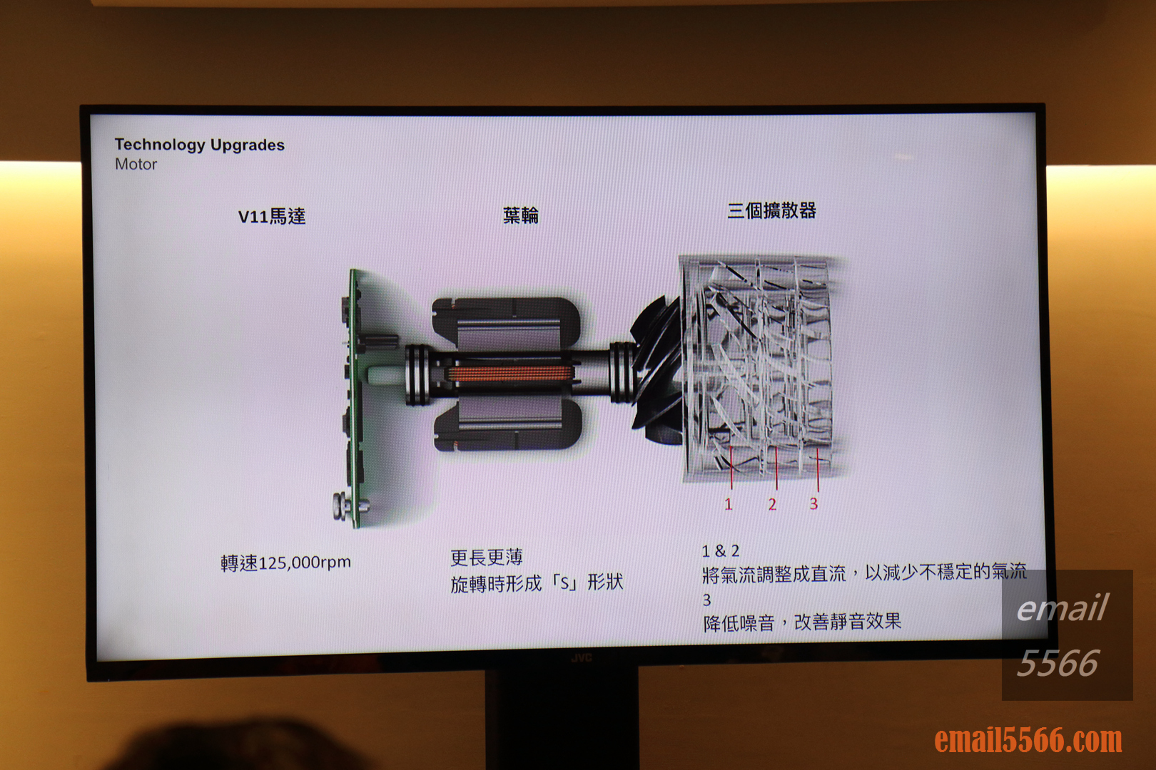 Mobile01 X Dyson V11養成班的講師則是技術講解為啥麼Dyson V11的吸力可以這麼強、續航可以這麼久,因為是透過馬達的進步和機構氣流方向的改良,只有不斷的研發和改良,才會使科技和產品不斷的進步